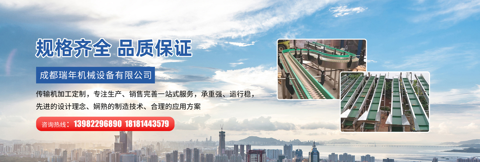 成都瑞年機(jī)械設(shè)備有限公司一家在中國(guó)自動(dòng)化機(jī)械設(shè)備領(lǐng)域?qū)I(yè)化生產(chǎn)廠(chǎng)家。公司專(zhuān)業(yè)于為客戶(hù)提供全方位的物流自動(dòng)化系統(tǒng)解決方案。在以往的經(jīng)營(yíng)業(yè)績(jī)中,產(chǎn)品成功的應(yīng)用于家電、食品、醫(yī)藥、五金制品、電控設(shè)備、通訊器材、儀器儀表、汽車(chē)制造業(yè)、電子資訊產(chǎn)業(yè)、摩托車(chē)、鋁型材、家具、玩具、家用電器、炊具、體育用品、各行業(yè)的小五金件及塑料件等行業(yè),公司主要產(chǎn)品有各種皮帶輸送機(jī)、不銹鋼視頻生產(chǎn)線(xiàn)、滾筒輸送機(jī)、汽車(chē)線(xiàn)束生產(chǎn)線(xiàn)、老化檢測(cè)線(xiàn)、板鏈線(xiàn)、差速鏈、臺(tái)車(chē)線(xiàn)、懸掛鏈線(xiàn)、烘干輸送機(jī)、烘箱、水簾柜粉末涂裝吸塵設(shè)備、標(biāo)準(zhǔn)倉(cāng)儲(chǔ)貨架等。